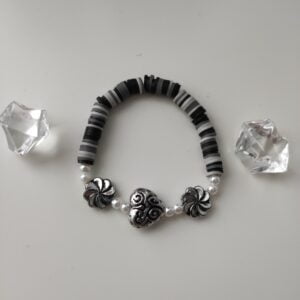 tříbarevný náramek z plackových korálků a srdíčkem